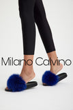 Furry comfort sole slippers. The part that touches the top of your foot is produced using genuine leather.